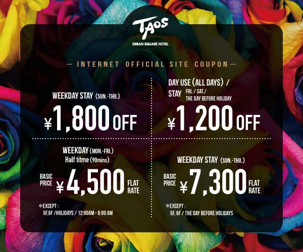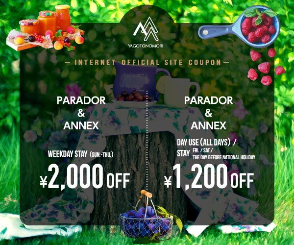 ※ The above coupons can be used at YAGOTO NO MORI HOTEL at sister stores.Please visit the official YAGOTO NO MORI HOTEL website for further information.